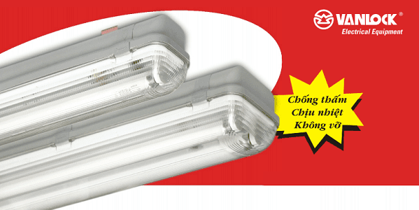 - Đèn chống thấm VWF 2058/M: Bộ sản phẩm sử dụng 2 bóng 58W, có tụ bù chống hao tổn công suất và cầu đấu 3 cực chống cháy. Sản phẩm phù hợp với không gian rộng, yêu cầu khả năng chiếu sáng tốt, mạnh.
